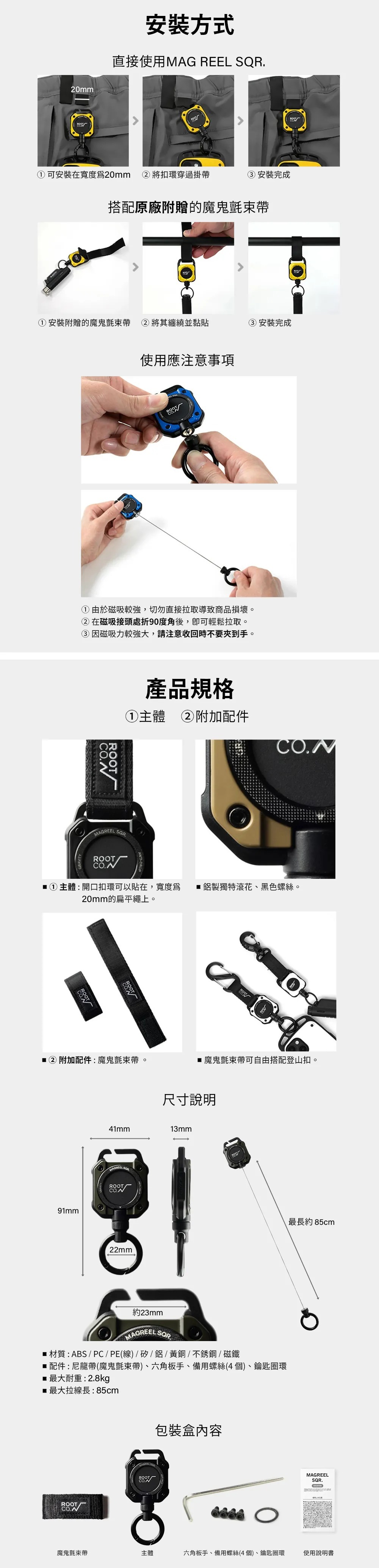 品名:MAG REEL SQR. 360 度正方形多功能登山扣